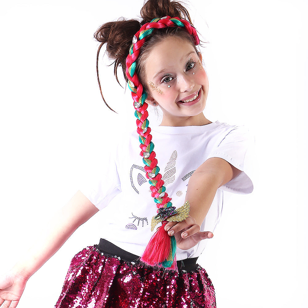 TIARA TRANÇA UNICORNIO-VERDE E PINK