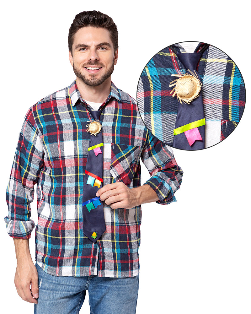 GRAVATA CAIPIRA COM NÓ PRONTO, DECORADA COM MOTIVOS JUNINOS E CORES EXCLUSIVAS. COM ESTAMPAS VIBRANTES E DECORAÇÃO CUSTOMIZADA, ELA ADICIONA CHARME E ESTILO AO LOOK COM UM TOQUE ESPECIAL E ÚNICO!